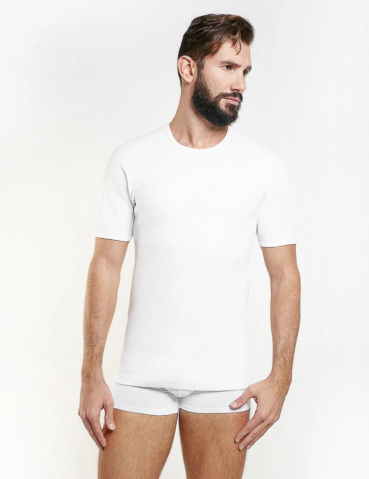 T-shirt girocollo mezza manica in morbido caldo cotone, taglie comode. Il capo e’ comodo e confortevole Composizione : 100%cotone