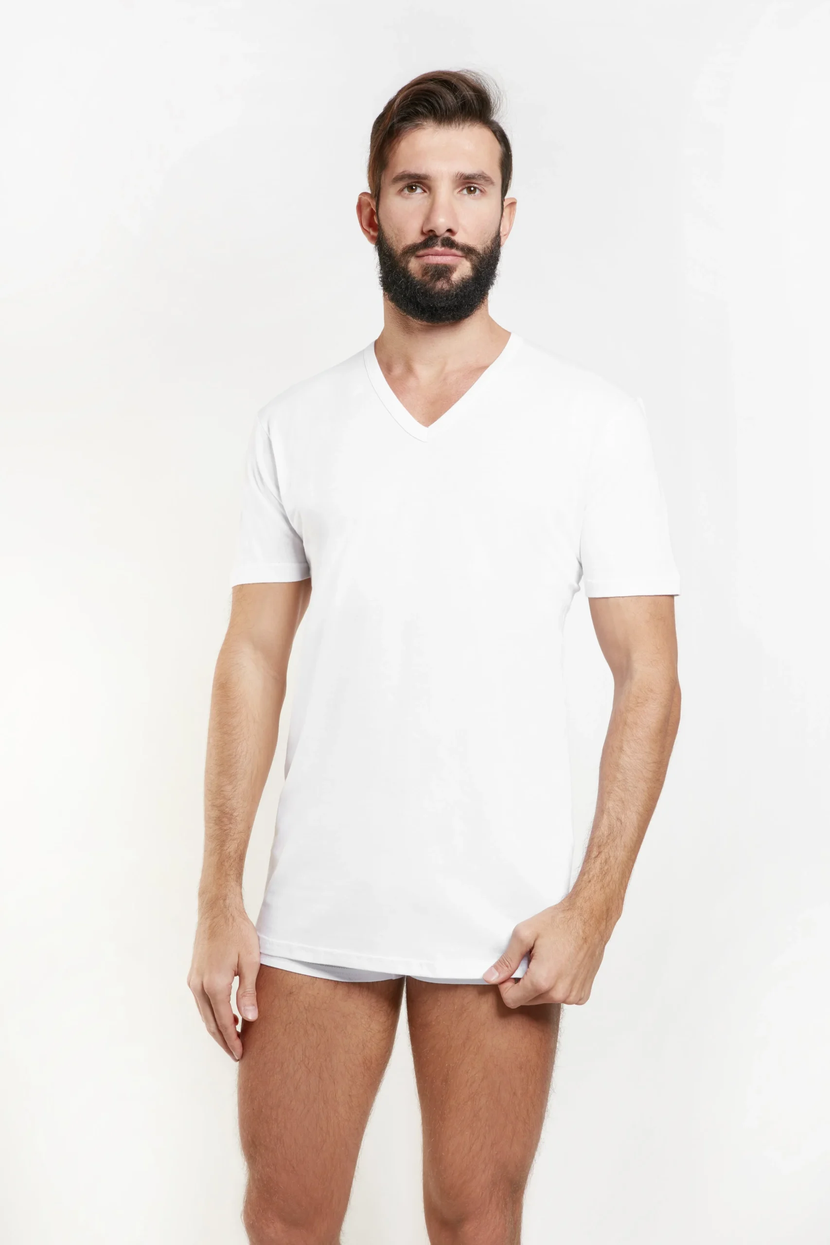 T-shirt con scollo a V realizzata in morbido cotone di alta qualita’. Il tessuto e’ leggero e traspirante, perfetto per le giornate calde o per strati invernali. La scollatura a V conferisce un tocco elegante e raffinato. Composizione : 100%cotone