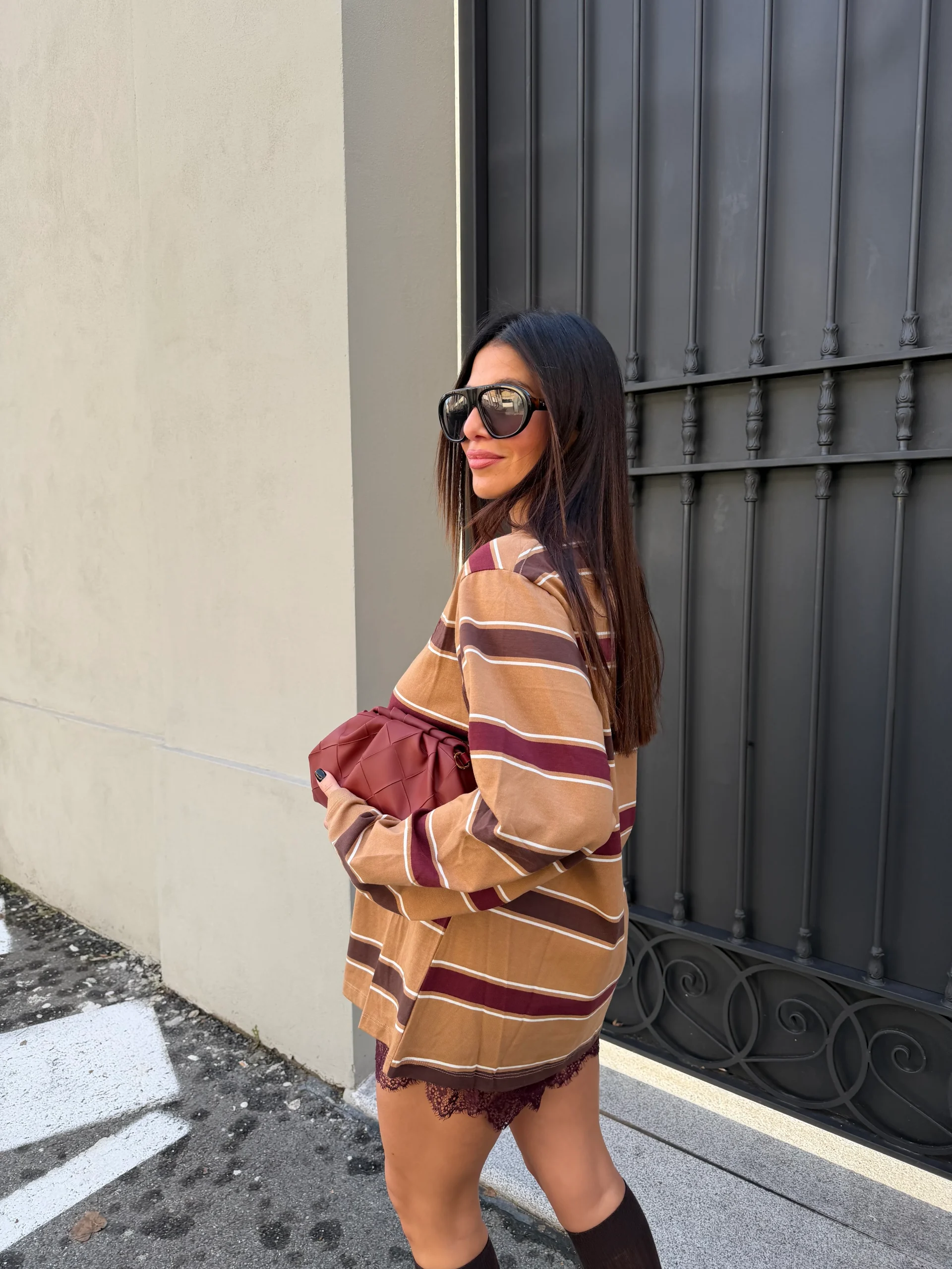T-shirt girocollo fantasia a righe con scritta Paris ricamata sul davanti. Vestibilita’ abbondante . Taglia unica.