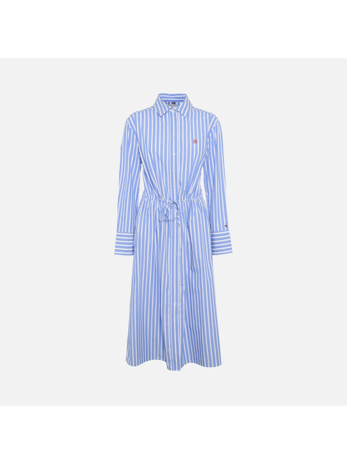 Puro cotone biologicoRighe verticaliColletto semifranceseCintura da annodarePolsini con bottoneMonogramma TH stamp ricamato sul pettoBranding Tommy HilfigerRelaxed fitManiche lungheLunghezza midiChemisier100% cotone biologico WW0WW414310A4