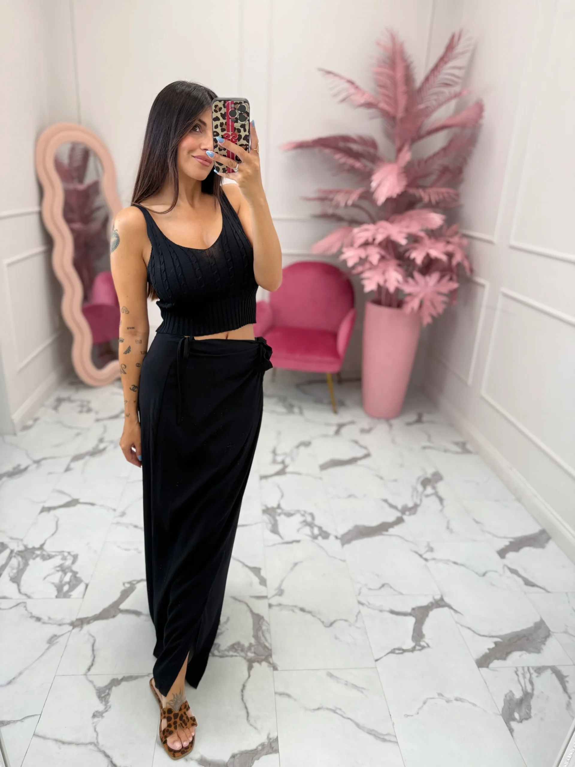 Top corto in maglia effetto intrecciata con spalline sottili. Taglia unica.