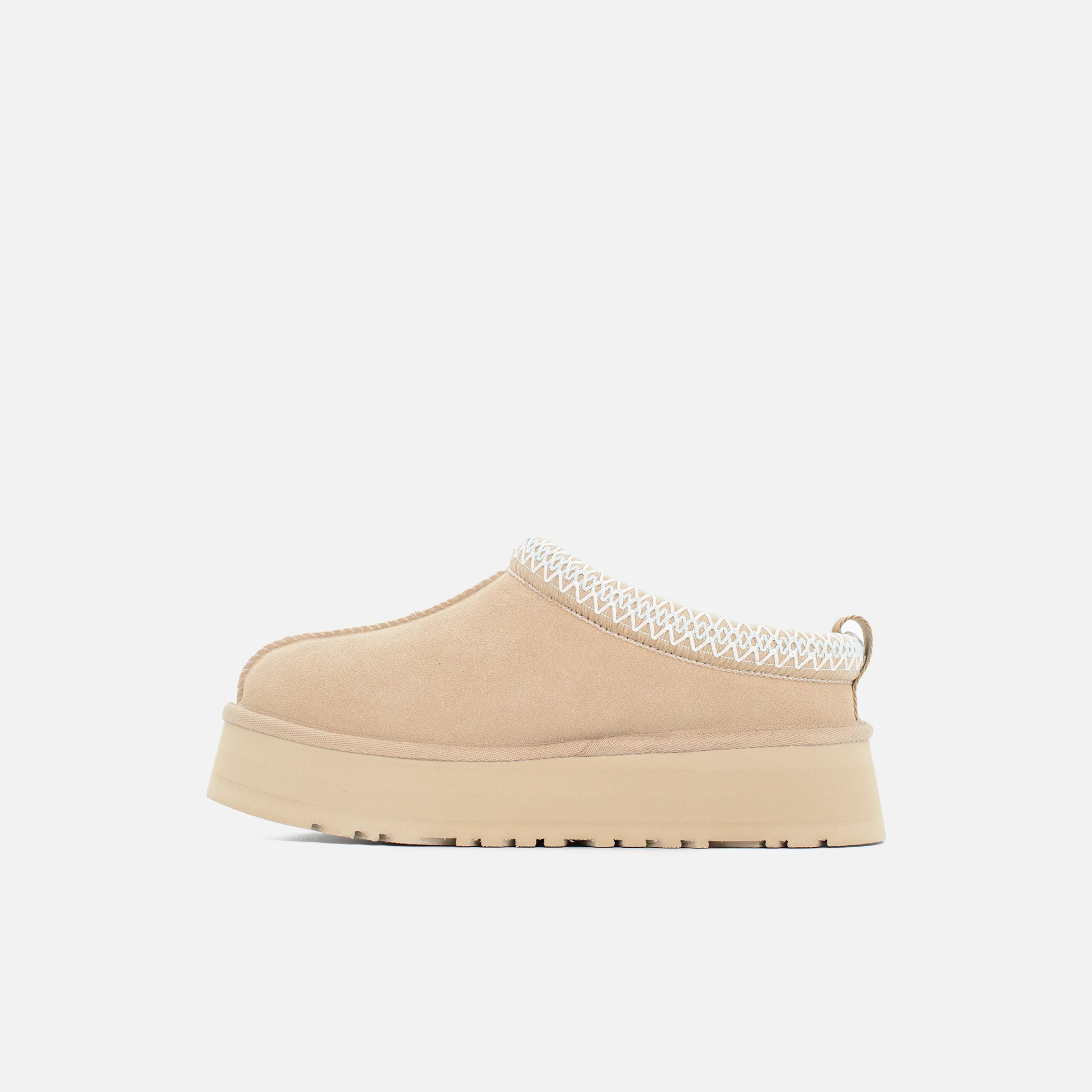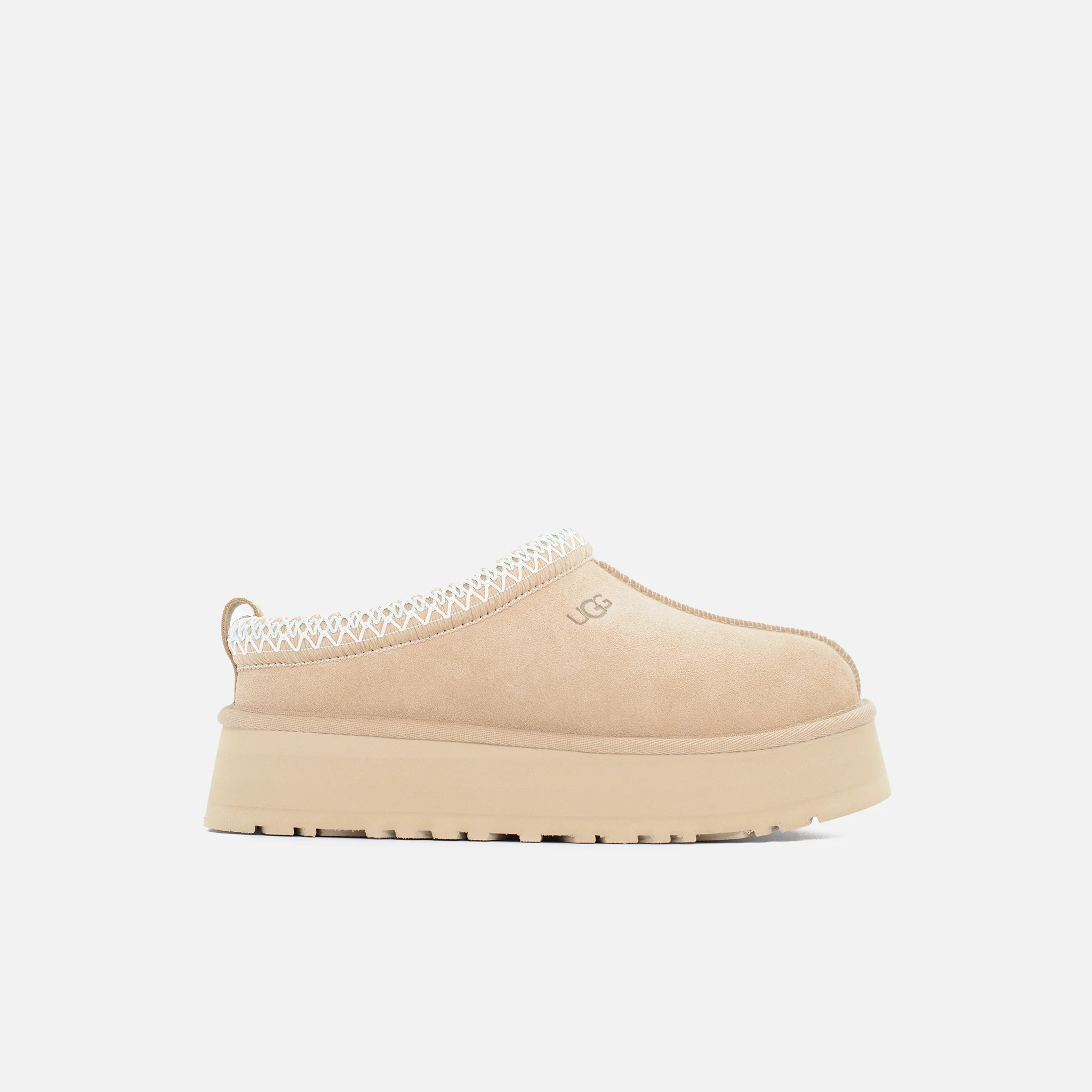 Tomaia in camoscioUGGbraid realizzato con fibre di poliestere riciclato (100%), tirante posterioreFodera in montone (10 mm)Soletta in montone (10 mm)Intersuola in EVASuola in EVA da canna da zuccheroBordo in tessuto, realizzato con il 100% di fibre di poliestere riciclatoAltezza del plateau: 4,4 cmLogo UGG® stampato a caldo in rilievo, etichetta in tessuto con logo UGG® […]